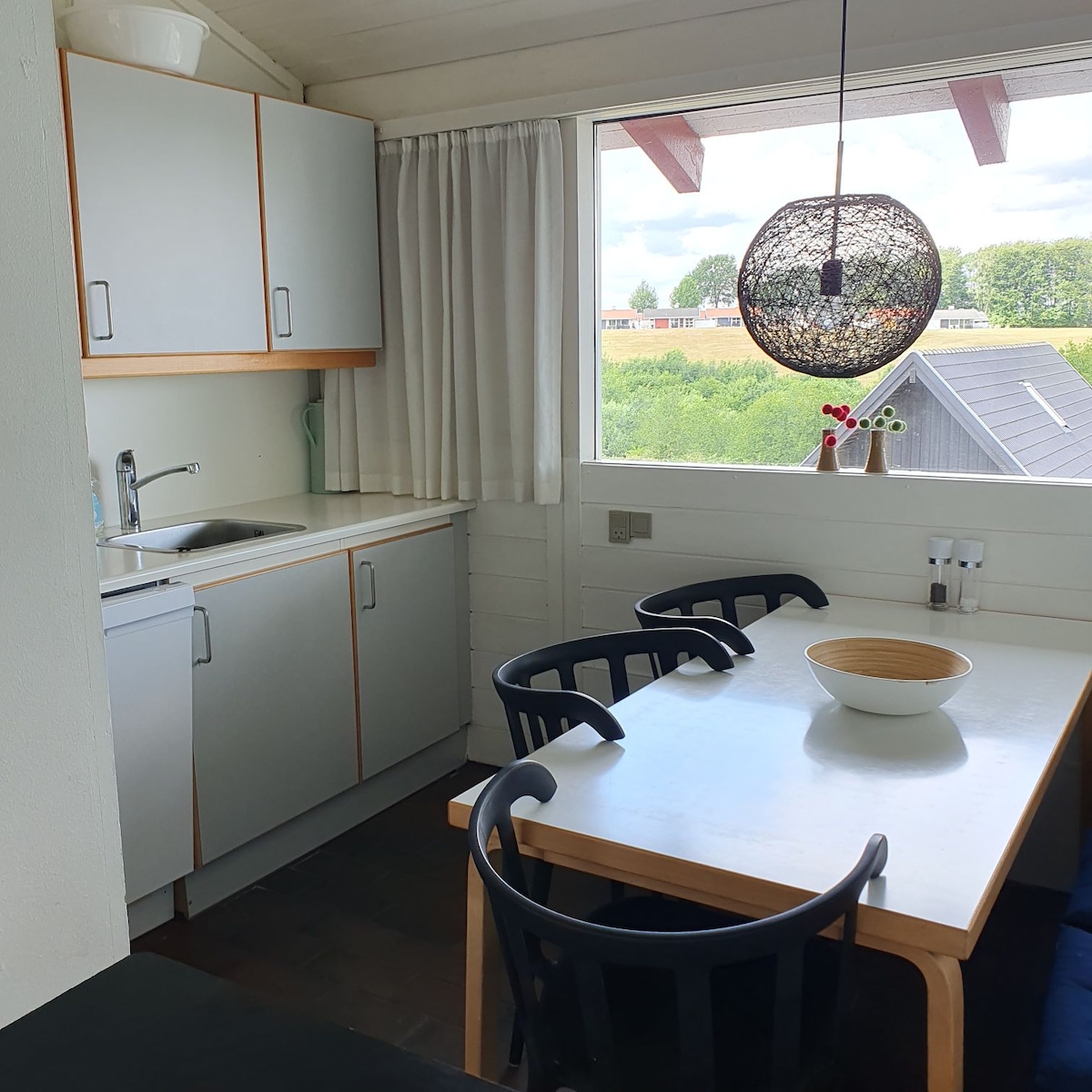 Hermoso apartamento recientemente amueblado en el corazón de Jutlandia del Sur. La casa consta de 2 hermosas habitaciones con acceso directo a la terraza con vistas al bosque y al lago. Además, hay 60 metros cuadrados de cocina/sala de estar (utilizada como sala de cursos por los propietarios). Hermoso baño grande con ducha doble. Pantalla plana de 60 pulgadas con Google TV. Wifi gratuito. Pequeña cocina con horno, fogones, microondas, cafetera, nevera con pequeño congelador incorporado.
