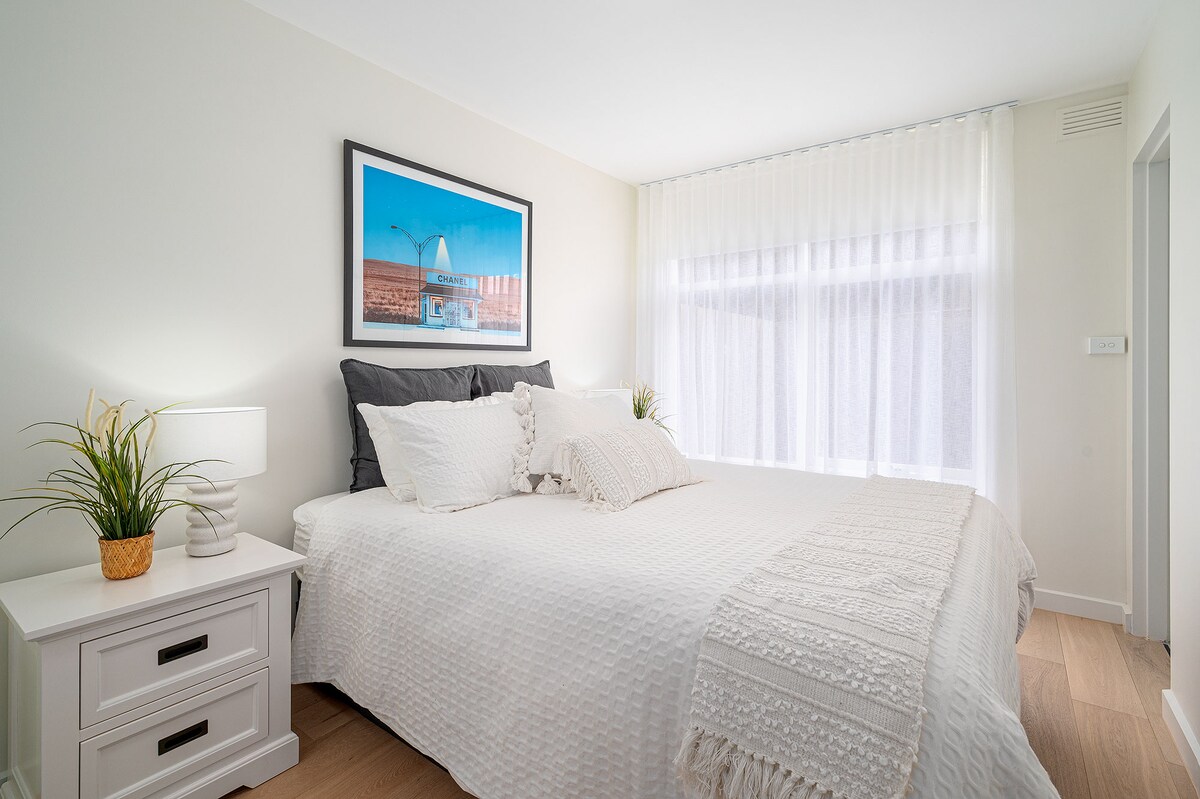 Elegante y recientemente reformado, planta baja, apartamento número 2, con cama tamaño king, PERMISO DE ESTACIONAMIENTO GRATUITO PARA VISITANTES, ideal para estancias largas/cortas con suelos de madera pulida, máquina de café espresso, secadora de lavadora WIFI fuerte, Porta Cot. A solo minutos del transporte, comodidades y de moda, buscado Bridge Road Richmond, famoso por sus cafés, proximidad al CBD y lugares icónicos de música y deportes como el MCG, Rod Laver arena,