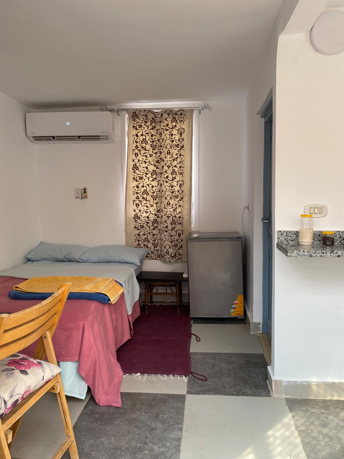 Dive into Cairo's vibrant downtown from this chic studio on Talaat Harb Street! Fully equipped with a comfy double bed and private bathroom, this stylish space is your perfect pied-à-terre. Explore the lively scene right outside, or unwind indoors. All within 10 minutes walk from Downtown Cairo, the Egyptian Museum, and the Cairo Tower, with easy access to airports and the Giza Pyramids!