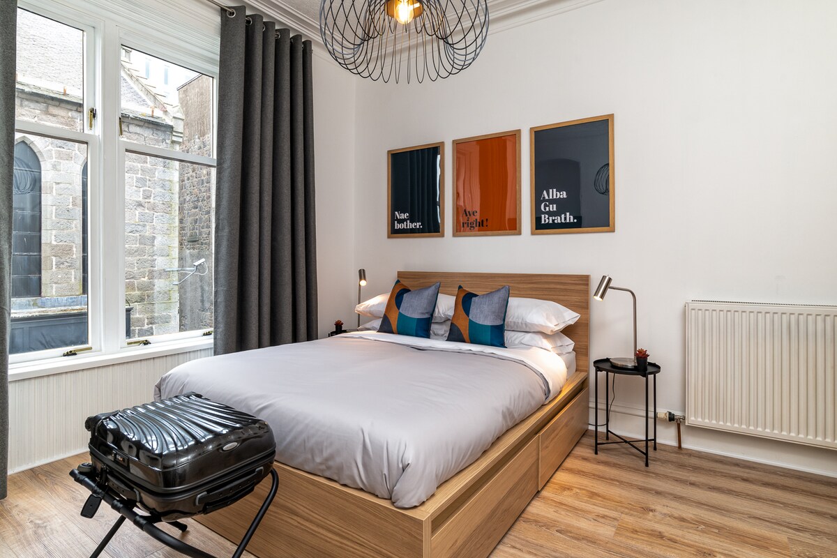 ¡Apartamento con decoración elegante y fresca! Apartamento de 2 dormitorios en el corazón del centro de la ciudad de Aberdeen. Gran opción para viajeros, viajes de negocios y familias. Puede alojar a 4 personas como máximo. Cerca del teatro, galerías, museos, centros comerciales, supermercado y tiendas. Cocina totalmente equipada. Justo al lado de Union Street Disfruta de una experiencia elegante en este lugar céntrico en el corazón del centro de la ciudad.