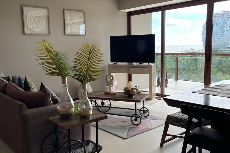 Disfruta de lujo y comodidad en este depto con vista parcial al mar en el 9º piso y acceso a playa privada. Tendrás acceso a: ✅ Playa privada con toldos y servicio de snacks y bebidas 🏖️🌊☀️ 🍹🧉🍺 ✅ 8 albercas, una con toboganes 🏊 ✅ Gym, 🏋️ ✅ Cine, 🎦🍿 ✅ SPA, 🧖♀️ ✅ Cancha de tenis y pádel, 🎾 ✅ Billar, 🎱 ✅ Futbolito, ✅ Voleibol y 🏐 ✅ Ludoteca Disfruta de unas vacaciones únicas en un espacio que combina lujo y entretenimiento