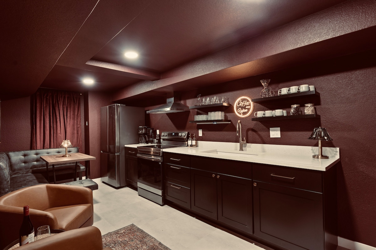 NO apto para 420 (marihuana). Nuestra suite privada en la planta baja tiene 2 dormitorios, 1 baño, acceso a una cafetería (cocina pequeña) y una sala de estar. Es espaciosa, cómoda y limpia. Vivimos arriba y alquilamos el sótano terminado. Las zonas comunes incluyen la puerta trasera, el patio trasero y la lavandería. Nuestra casa se encuentra en un barrio de lujo, con una ubicación conveniente cerca del transporte público y del aparcamiento fuera de la calle. Los techos son bajos, por lo que las personas muy altas (más de 6'1") tendrán problemas.