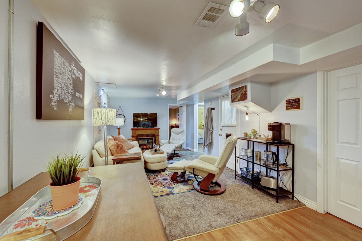 Ven a alojarte en esta suite del sótano recién renovada a pocos minutos del centro de Denver, Coors Field, Mile High Stadium, Highlands y el distrito artístico de RiNo. Esta casa céntrica está justo al lado de la I-25 y la US-36, ¡a menos de 30 minutos de Boulder y Red Rocks! La suite privada de un dormitorio es espaciosa y acogedora. Está equipada con una cafetería y un comedor, un espacio de oficina WFH, un hermoso baño con ducha a ras de suelo y un patio/patio trasero con un pozo de fuego y muchos asientos.