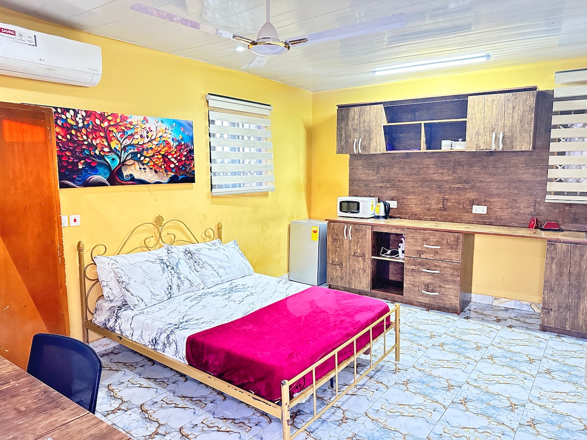 Bienvenido a nuestro hermoso apartamento tipo estudio, ubicado en el corazón de East Legon, uno de los barrios más vibrantes y exclusivos de Accra. Tanto si estás en la ciudad por negocios como por placer, este acogedor y elegante espacio ofrece todo lo que necesitas para disfrutar de una estancia cómoda e inolvidable. Relájate y desconecta en tu propio balcón privado, que ofrece un espacio tranquilo para disfrutar del aire fresco y de los alrededores.