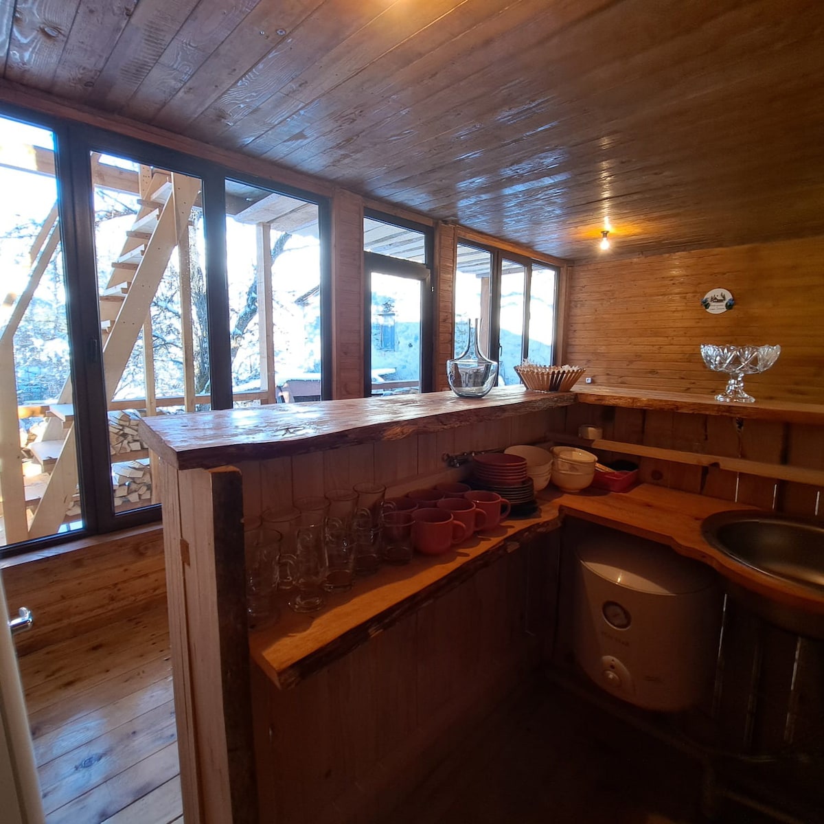 Just a 4-minute walk from Mestia’s main square and 10 minutes by car to the ski lift. 🏔 Stunning mountain views from the terrace 🛌 Comfortably sleeps 4 guests 🍳 Fully equipped kitchen 🛋 Cozy living space with soft lighting ❄️ Air conditioning + heaters 🧼 Fresh linens, towels, and essentials 📶 Wi-Fi 🅿️ Free parking 🌙 Very quiet and peaceful - ideal for rest Whether you’re here to explore or unwind, our cabin has everything you need. Book your stay today!