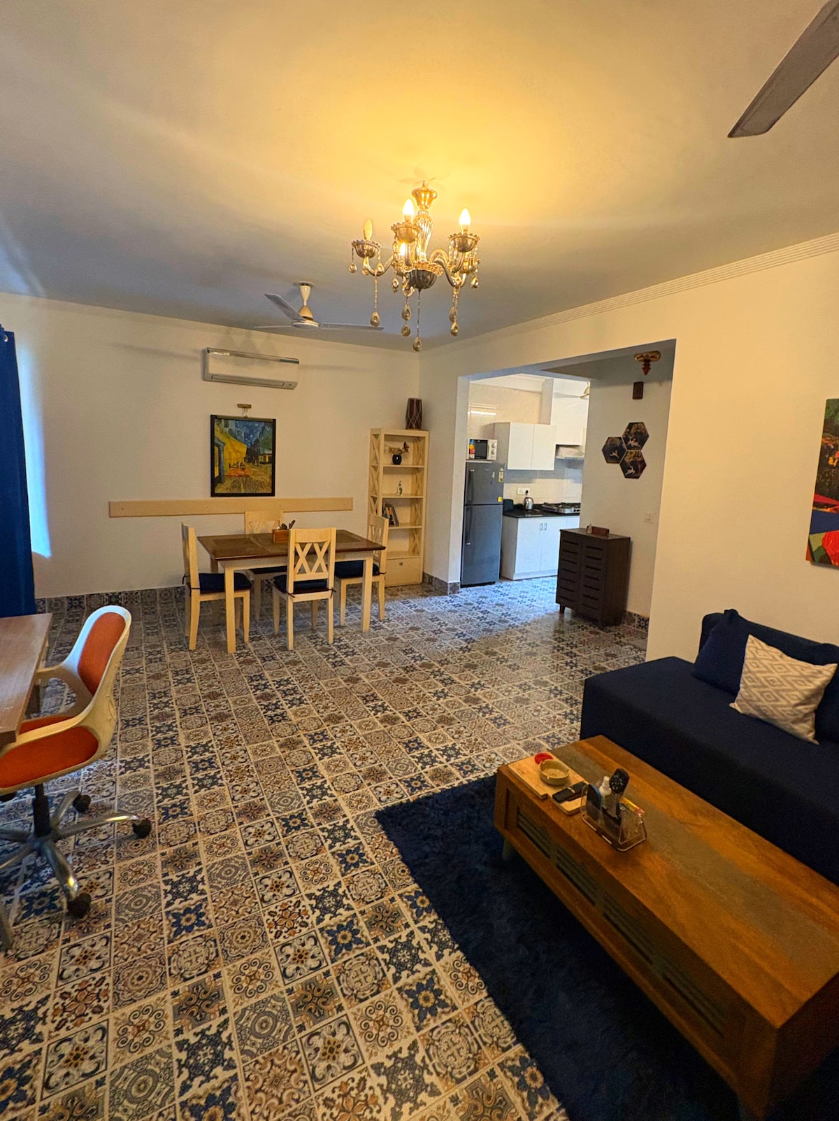 ArtCove is a serene hideaway in the heart of North Goa. Tucked in a quiet nook yet 2 mins from Siolim market, it blends stillness with comfort where mornings are calm & slow, evenings are cozy & peaceful while nights are still and restful. Artcove Sky (1bhk) offers: 1 Modern interiors 2 Cozy patios 3 Fully equipped kitchen 4 Cloudlike bed 5 Chilled AC room 6 Safe parking at your doorstep 7 Housekeep services included 8 Whole floor is private Perfect for long stays, WFH or quick escapes.