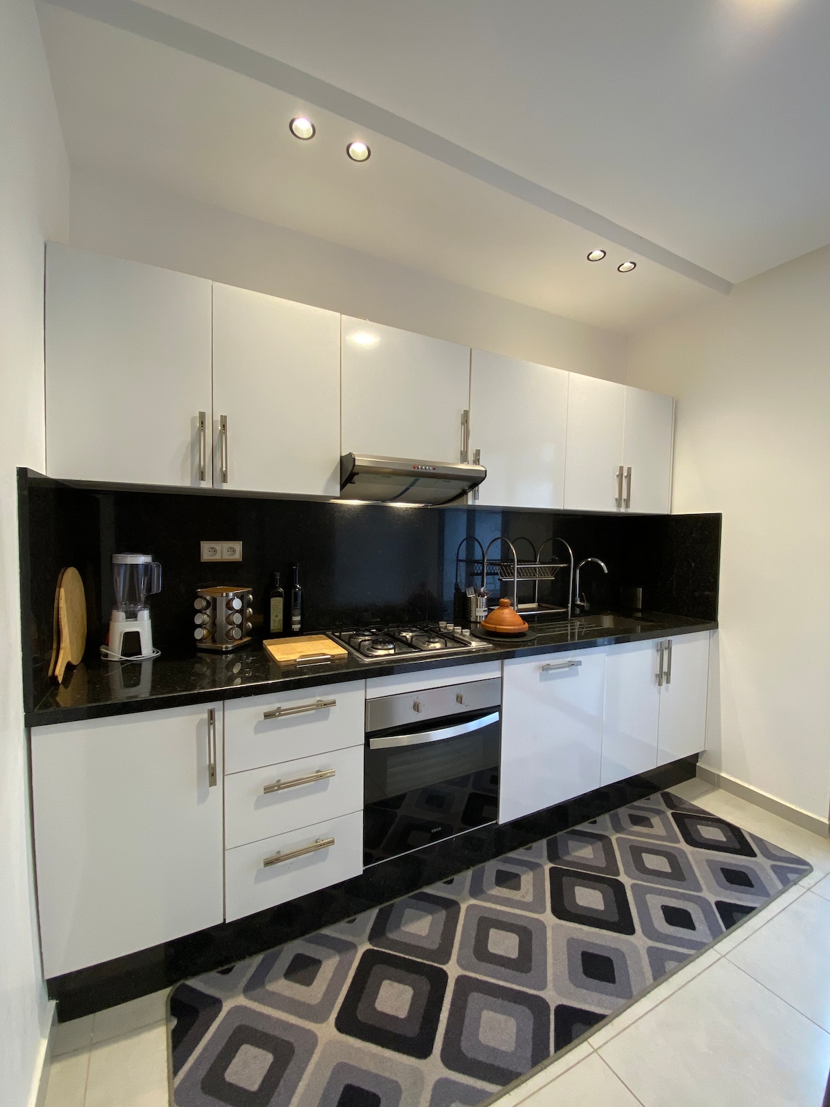 80m² Apto. Soleado amueblado. Cocina equipada con electrodomésticos de calidad. 2 dormitorios (o 1 dormitorio con estudio con sofá-cama). 1 salón. 2 pequeñas terrazas. Autobús, tranvía y mercado de frutas y verduras a 5 min. a pie. 20 min. a pie de la medina. Estancia mínima: 7 noches. Los huéspedes deben proporcionar una copia de su identificación. De acuerdo con la ley de convivencia marroquí, las parejas marroquíes de los sexo opuesto deben enviarnos una copia de su certificado de matrimonio.