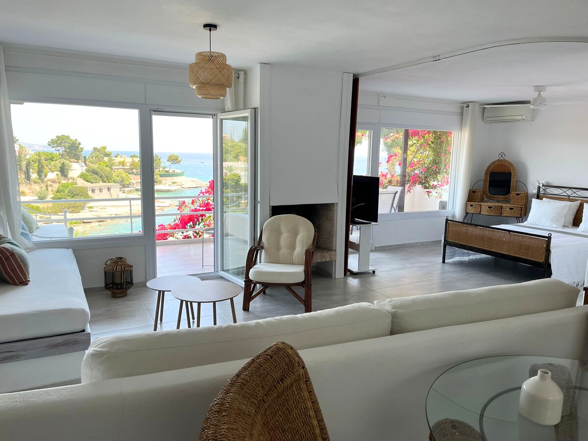 Si has visto «Glass Onion: All knives out», es la villa de la introducción de la película (de 13:00 a 18:00). Ubicación única junto al mar cerca de todo: el icónico hotel Poseidonion, el centro de la isla, dos cines al aire libre, el mercado, restaurantes, cafeterías, bares, playas, todo a poca distancia a pie y con las mejores vistas del mar y hermosas puestas de sol. 4 dormitorios, con capacidad para 8-10 personas, todos con su propio baño, varias terrazas al aire libre, bonita cocina espaciosa y luminosa.