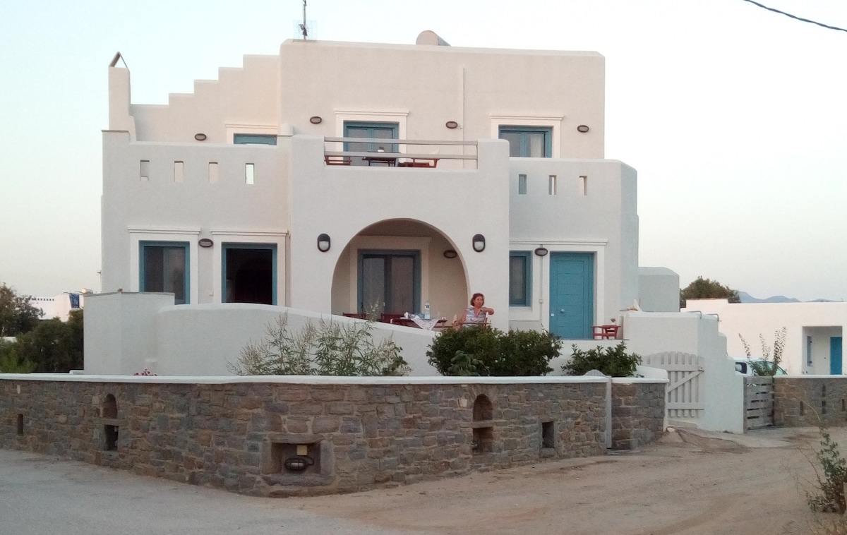 Enjoy a vacation in our cozy 2-bedroom apartment with balconies overlooking the vegetable garden - perfect for a group of 3 or 4. Our Cycladic building is located on the main road within walking distance of many restaurants, bars and the most popular beaches of Naxos. We are located 500m from Agia Anna Beach, 11 minutes from Naxos Town (port) by car and 6 minutes from the airport. Hosts occupy a separate private apartment in the building and are readily available for help and suggestions.