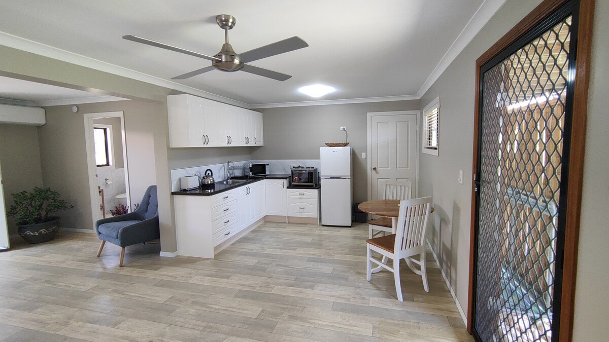 Escóndete en tu propio oasis de paz a solo 15 minutos en coche de la emblemática playa de surf principal de Agnes Water. Este cobertizo convertido es completamente autosuficiente; todavía ofrece las comodidades modernas de la criatura, pero viviendo 100% fuera de la red. Solar, agua de lluvia, inodoro vermicompost, sistema de agua caliente contra incendios... volver a lo básico mientras disfruta de Wifi. Conecta con la naturaleza, las aves y los canguros locales. Mira las estrellas junto al fuego. Relájate y relájate con esta experiencia en los arbustos.