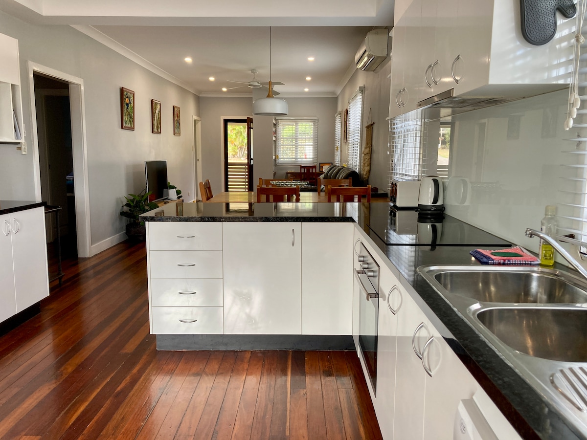 Te damos la bienvenida a Agnes Water Views. Situado en uno de los puntos más altos de Agnes Water, disfruta tanto del amanecer como de la puesta de sol desde Agnes hasta 1770 y Bustard Heads desde el porche de 13 m de largo. Abierta a los huéspedes por primera vez en septiembre de 2021, nuestra casa de campo restaurada con cariño se ha terminado pensando en tu comodidad. Disfruta del tranquilo bloque de matorrales con abundantes animales nativos. Aunque es privada y tranquila, estás a solo 1 km de la playa principal y a 3 minutos de tiendas, cafeterías y restaurantes en la parte inferior de la colina.