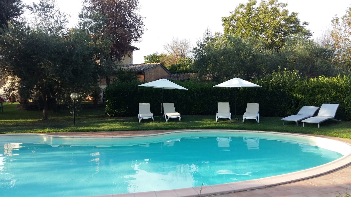 La casa es un bonito y luminoso apartamento de dos habitaciones, una parte de una granja toscana. Finamente amueblado, es acogedor, cómodo y romántico, ideal para la experiencia de una pareja. Puede alojar cómodamente hasta 3 adultos. Se encuentra en el campo, pero a las puertas de la ciudad de Siena, se puede llegar fácilmente al centro histórico a pie en unos 25-30 minutos. En el exterior tiene un gran jardín cuadrado. Es accesible y está libre de barreras arquitectónicas.