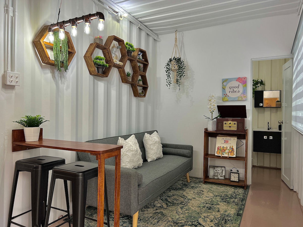 Una escapada perfecta en pareja rodeada de naturaleza y paz. Una casa contenedor amueblada de forma única que ofrece un diseño cómodo y contemporáneo, situada en las hermosas montañas de Aibonito. Disfruta de un jacuzzi climatizado entre vegetación y un ambiente relajante que te desconectará por completo de todo estrés y preocupaciones. Relájate en el área de la terraza y escucha cantar a los pájaros o en la fogata. Bosque Jíbaro es realmente una experiencia increíble para una pareja!