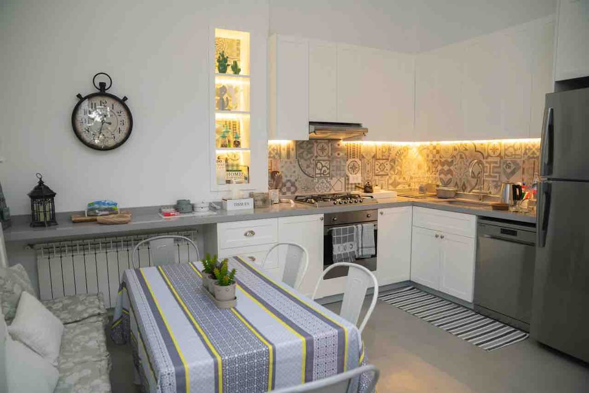 Situado en un barrio vibrante en Mar Mikhael con restaurantes de moda, boutiques y galerías de arte, todo dentro de un tramo de una carretera. El apartamento es moderno, acogedor y cómodo en un edificio seguro y tranquilo. Lleva tus comestibles a domicilio o camina hasta Grab'n'Go a la vuelta de la esquina. El museo Sursok está a 15 minutos a pie. Kalei, Sip Café y souk el Tayeb están a poca distancia a pie. Fácil acceso a la autopista. 5 minutos en coche a Badaro. 8 minutos a la arena junto al mar donde puedes dar un paseo por el mar.