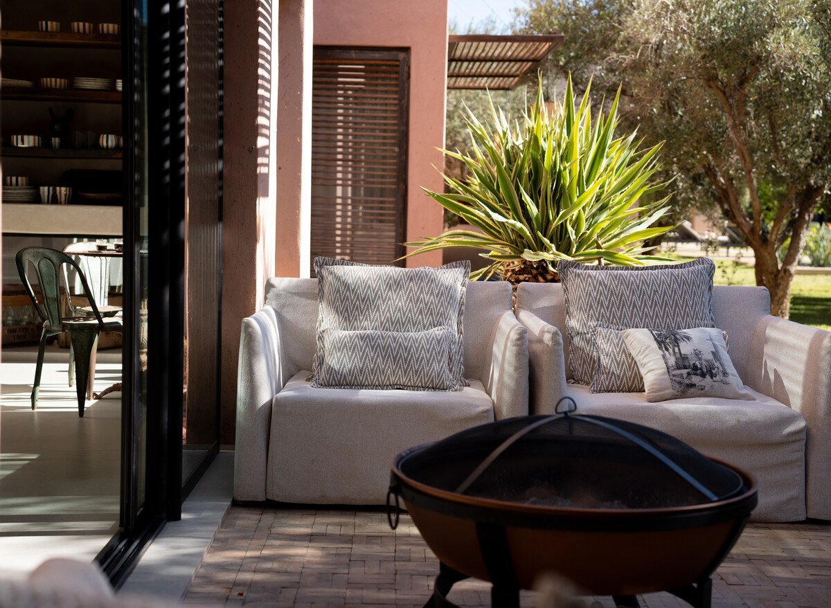 Escápate del bullicio de Marrakech en nuestra nueva villa, un remanso de paz sin vecinos, que ofrece impresionantes vistas a las montañas del Atlas. A 36 km del centro de la ciudad, es el lugar ideal para una desconexión total en familia o con amigos, combinando lujo moderno y autenticidad marroquí. *La Villa* Ha sido diseñada para ofrecer un confort sin concesiones y una experiencia inolvidable. El exterior: su oasis privado