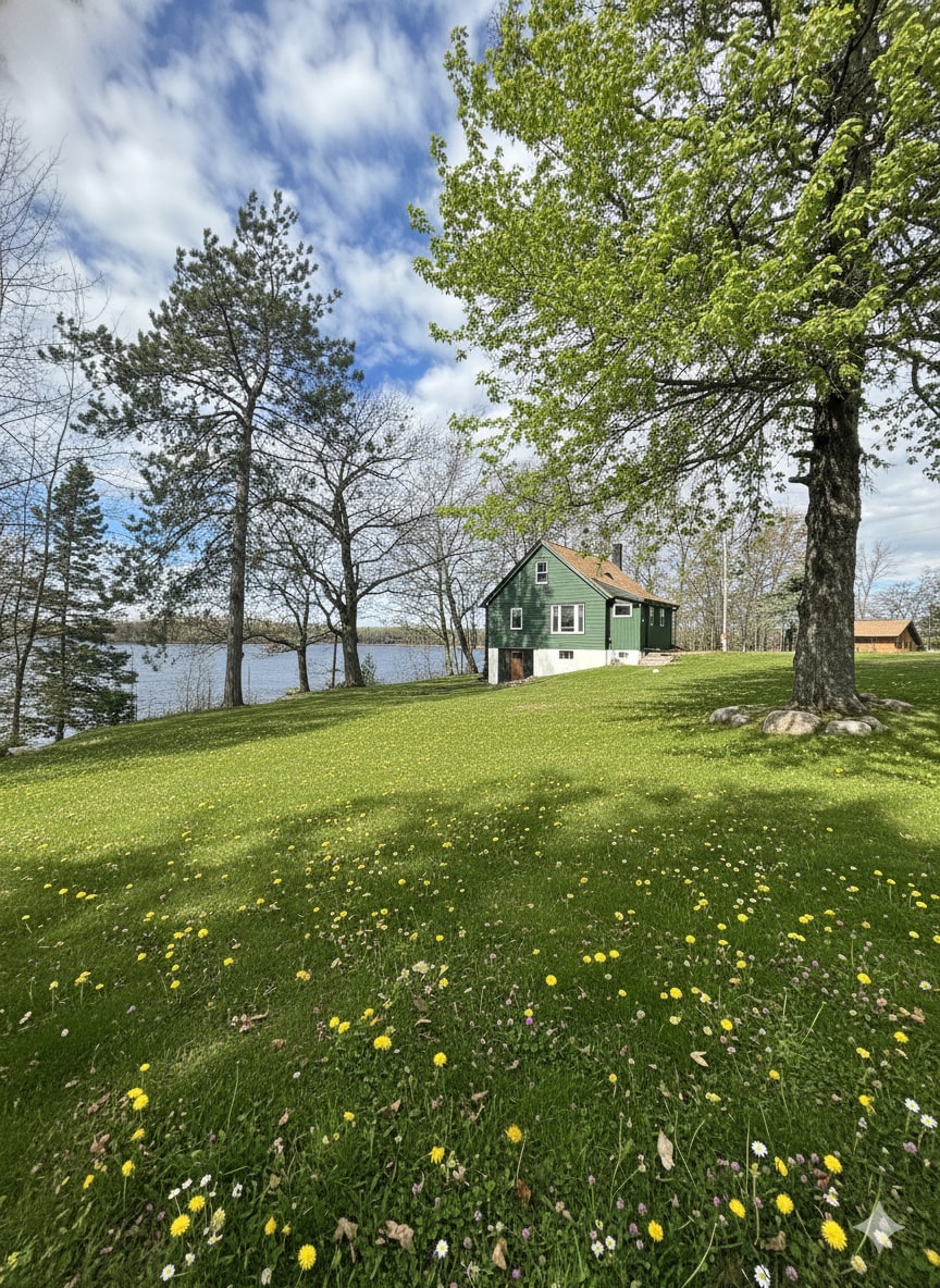Casa escolar restaurada y acogedora de 1894 en un lago sereno