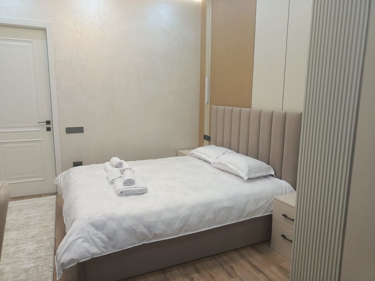 ¡Bienvenido a nuestro luminoso y hermoso apartamento (75 m2) para una estancia cómoda y acogedora! Tamerlan Residence es un moderno complejo residencial construido por la empresa líder local BI-GROUP. ¡El complejo residencial está en un nuevo centro de la ciudad en desarrollo dinámico, cerca de lugares culturales y administrativos clave!