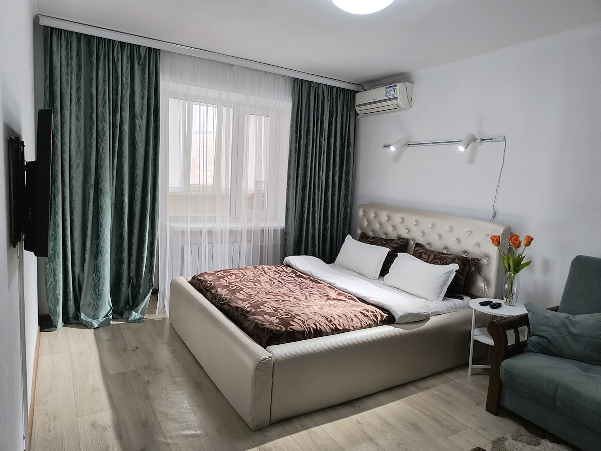 Departamento limpio, espacioso y luminoso en Aktobe Azhara con unas vistas espectaculares de la avenida central de la ciudad. Hay una cama limpia, toallas, productos de higiene y secador de pelo. A poca distancia a pie: el centro comercial Sity, el centro comercial Aktobe-Azhary, el parque acuático Tree of Life, la tienda de comestibles, el comedor del aeropuerto, los bancos, el parque del primer presidente, la mezquita Nur Gasyr, la ciudad de Trk Keruen, el supermercado Anwar, las farmacias, etc. Infraestructura de transporte bien desarrollada, la casa está ubicada en la avenida principal de la ciudad, una parada cerca de la casa.