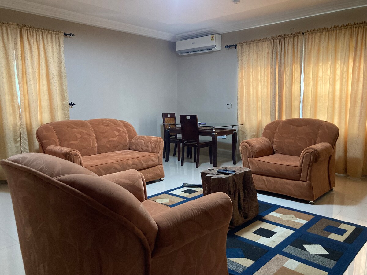 Dentro de nuestra casa, disfrutarás de todos los lujos; ● dormitorios con baño ●Amplio salón y comedor abiertos. ●Lavadora. Cocina ●totalmente equipada. ¡●Todos los dormitorios y salas de estar tienen aire acondicionado! ●TV en todas las habitaciones. Wifi ● gratuito ● Una valla eléctrica segura. Consta de seguridad● 24 horas al dia ● ¡Generador de reserva para evitar sorpresas! ●Un coche y un conductor te esperan (bajo petición) para ayudarte a explorar cada parte de Ghana. ¡● Un chef galardonado para atender tus pedidos, ya sean platos continentales o locales!