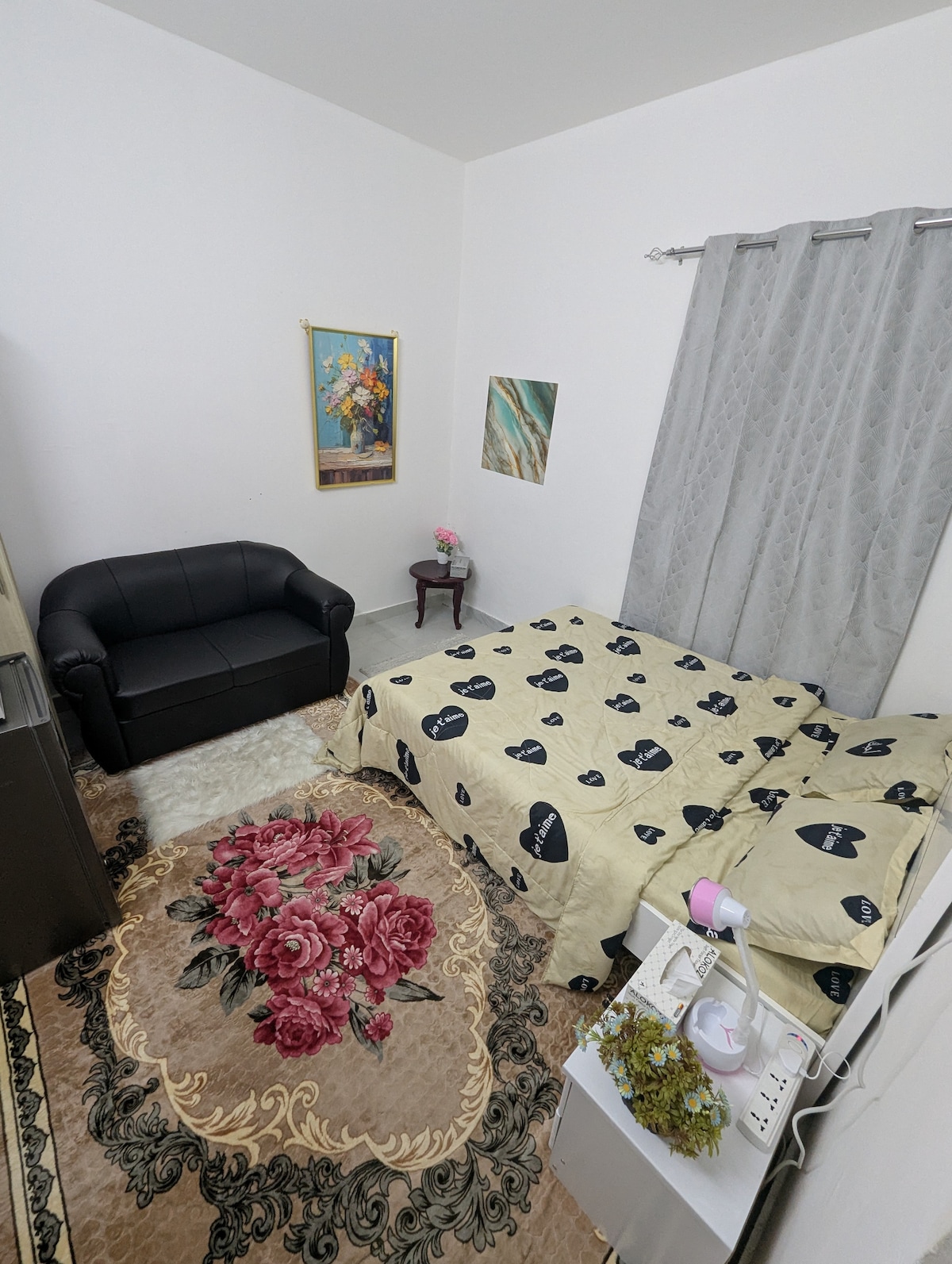 Jimi moods (Gray) acogedora casa de vacaciones tipo estudio, de nuestras 14 unidades esta es nuestra unidad más pequeña (6x2,4) para personas prácticas que buscan gastar menos en alojamiento durante su viaje a la ciudad de Al Ain, la cama es de tamaño doble y puede acomodar a 2 adultos, la unidad es adecuada para dormir, el período mínimo de reserva debe ser de 3 noches debido a razones operativas, tienes todos los artículos necesarios, barrio seguro y agradable cerca de Qattara Oasis.