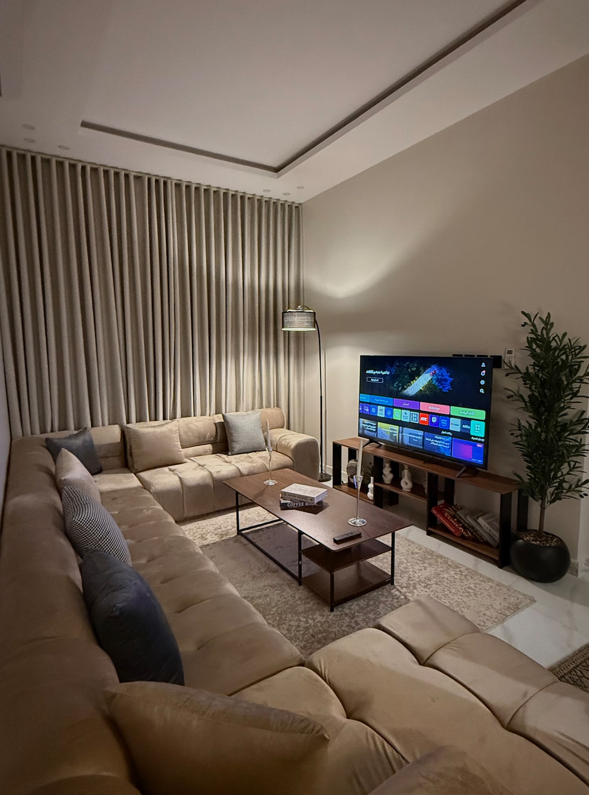 Un departamento lujoso y elegante con una nueva arquitectura y una ubicación privilegiada con una noche tranquila con todos los hermosos detalles para pasar los momentos más hermosos Consta de un dormitorio, armarios de almacenamiento y un purificador de aire con vistas a una calle en vivo, un salón distintivo con acceso gratuito a Internet y una pantalla de 65 pulgadas con Samsung Sound Bar con suscripción activada a Netflix, reloj, YouTube y varios programas. ¡Te damos la bienvenida a nuestros huéspedes !