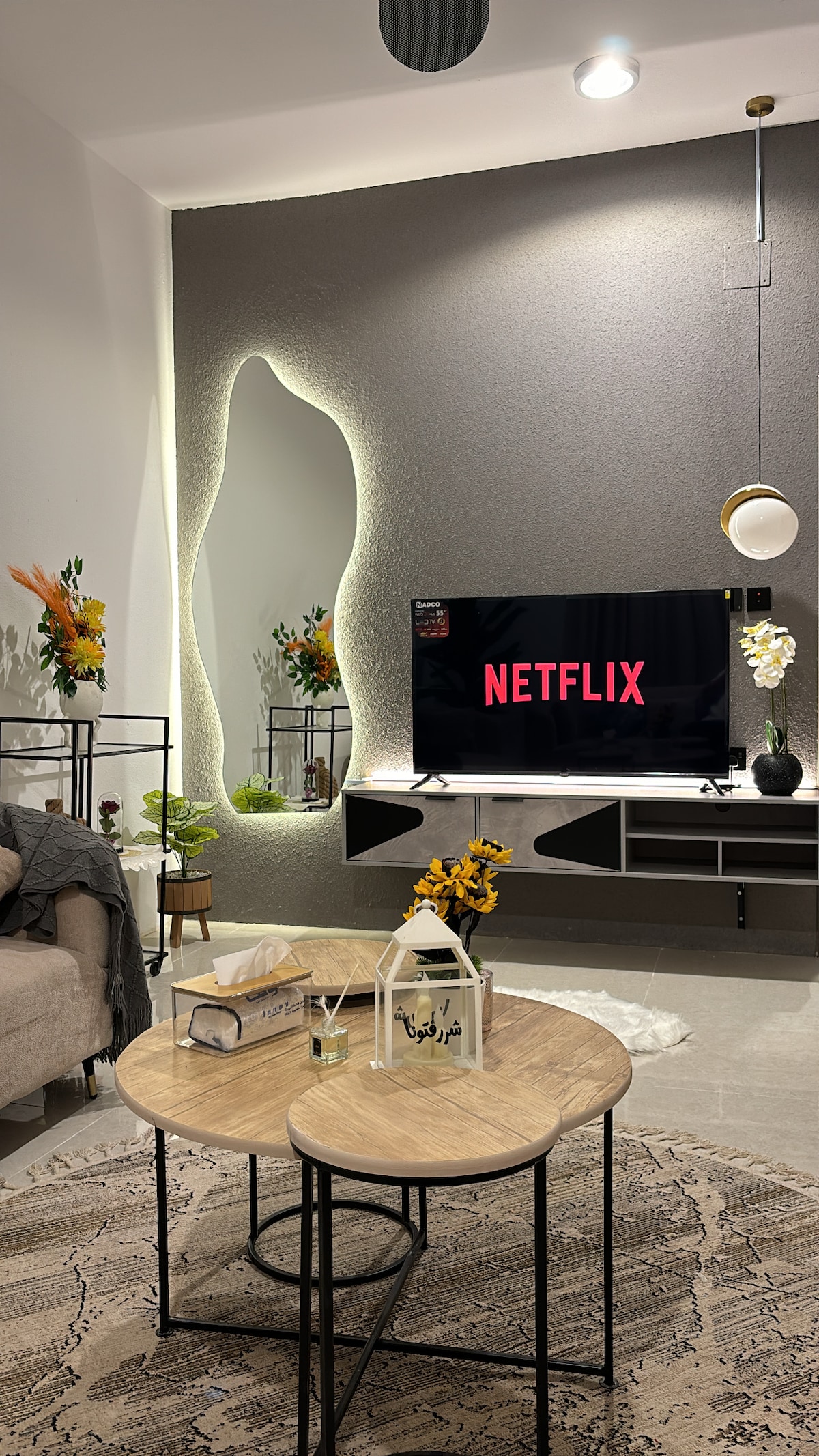 Disfruta de una estancia excepcional en este lujoso apartamento que combina el carácter moderno y la identidad cultural de la región de Qassim. Está cuidadosamente diseñado para darte una sensación de calidez y pertenencia, a través de detalles decorativos inspirados en colores y formas elegantes, mezclados con sofisticados toques de hotel. El apartamento tiene 3 dormitorios elegantes y cómodos, una cocina totalmente equipada con todas las herramientas y electrodomésticos necesarios para preparar tus comidas cómodamente, además de una elegante sala de estar con muebles de lujo que reflejan el espíritu del lugar, y tres baños modernos con elegantes acabados que proporcionan el máximo confort y privacidad.
