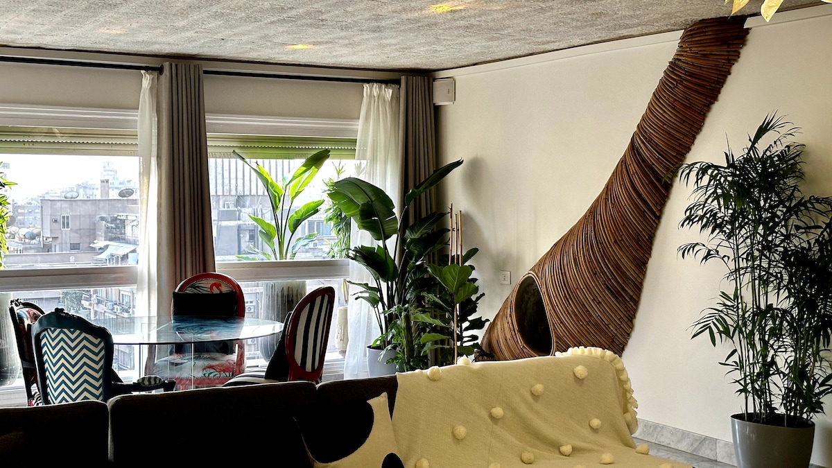 Alójate con estilo en el que quizás sea el apartamento en Airbnb más bonito de El Cairo, ubicado en un edificio de principios del siglo XX situado en el recién renovado barrio peatonal del bullicioso centro histórico de El Cairo, el centro cultural, financiero y de empresas emergentes de Egipto. Con techos de 4 metros de altura, detalles arquitectónicos reutilizados y una mezcla hábilmente seleccionada de muebles antiguos, vintage y nuevos, este apartamento de dos dormitorios cuenta con 3 balcones, una cocina cómoda y un área de cama loft adicional.