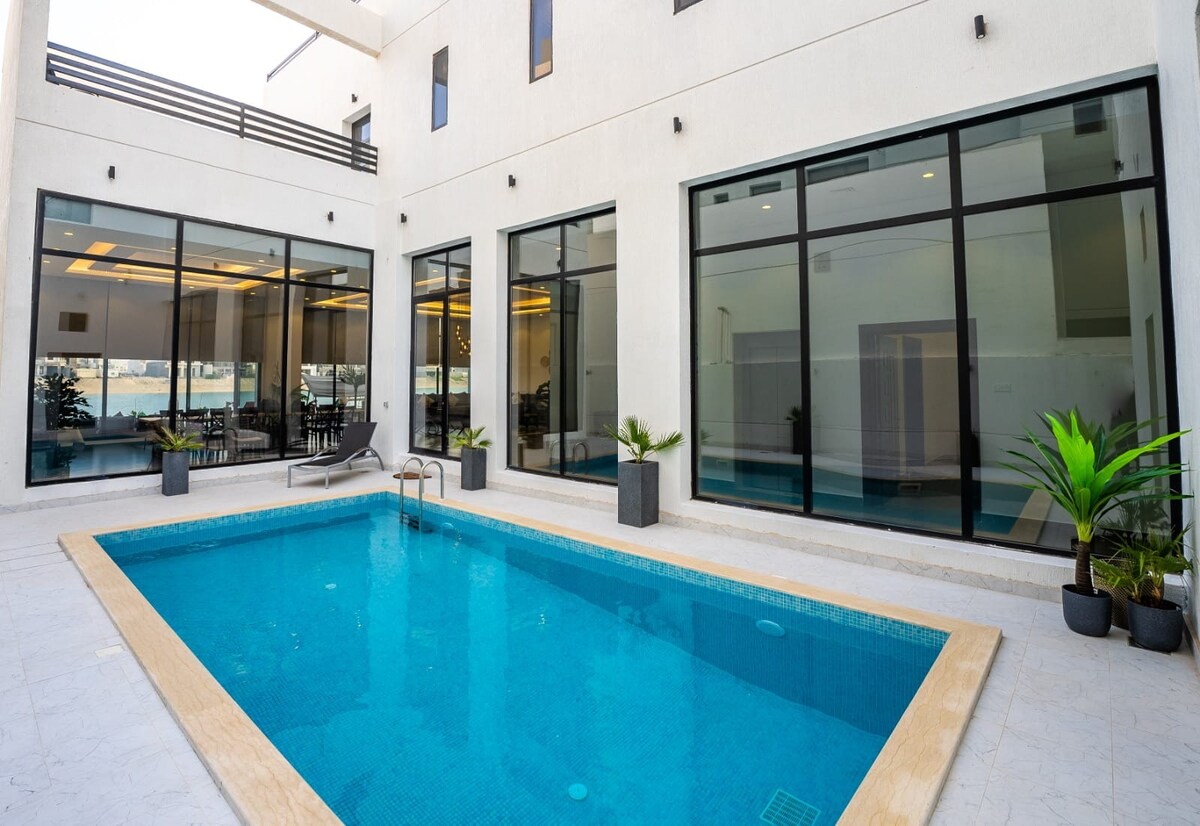 Un chalet junto al mar en la ciudad marina de Al-Khiran (Parque Nacional). El Parque Nacional se caracteriza por su excelente ubicación y servicios diversos, así como por la seguridad para una mejor estancia para ti y tu familia . Hay muchas piscinas compartidas para niños y adultos, así como una piscina privada cubierta para damas, bicicletas dedicadas al alquiler, una tienda de suministros marinos y un supermercado. El chalet privado Nadia sería la opción perfecta para unas vacaciones familiares completas con este elegante alojamiento. Nadia Chalet tiene impresionantes vistas al mar.