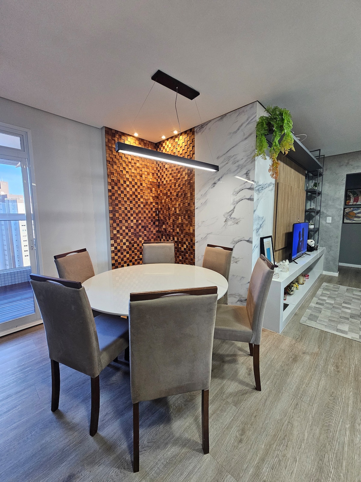 Apartamento moderno con vistas impresionantes, especialmente para la puesta de sol. Excelente ubicación, cerca de farmacias, gimnasio, UPA, panadería y frutería. Estacionamiento incluido. El condominio ofrece un mercado y espacio para mascotas. Priorizamos el reciclaje, con contenedores específicos. Tiene un televisor en la sala de estar y el dormitorio, además de una Nintendo para divertirse. La oficina en casa está bien equipada, con una pantalla adicional, alfombrilla para el mouse y silla para jugadores. Aire acondicionado en la sala de estar (frío) y ventiladores/calefactores en las habitaciones.
