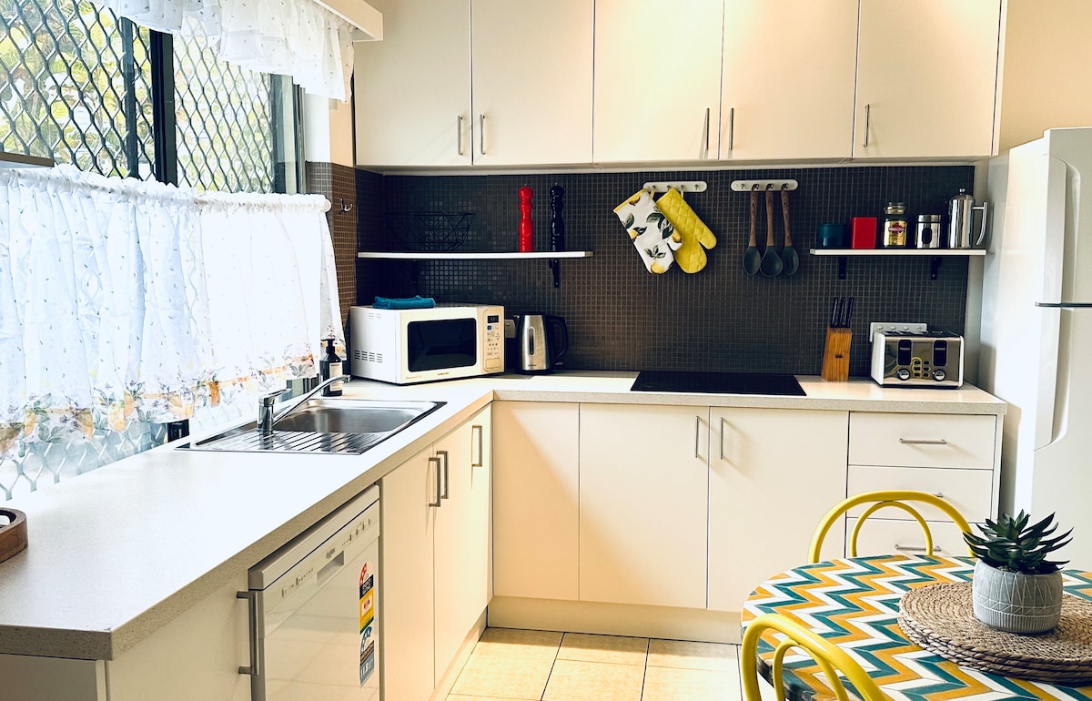 Como nuevo, extremadamente limpio, unidad de 1 dormitorio con su propia área de estar privada al aire libre exclusiva, lavandería, tenis de mesa y equipo de ejercicio. Tienes agua filtrada junto con tu propia entrada a la piscina y al área de barbacoa que también puedes usar exclusivamente. Disfruta de un lujoso y moderno interior con tu propia cocina, nevera y un enorme televisor inteligente Android 4K de 65 pulgadas. Ten en cuenta que, por alguna razón, Airbnb persiste en publicar esto como Leanyer, ya que está al otro lado de la calle, se considera Wanguri.