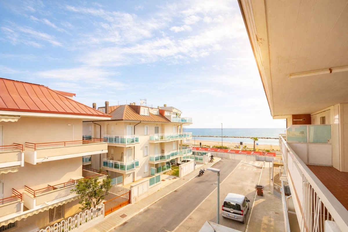 The Pineta Fronte Mare Trilo Apartment is located on the second floor of a small, elevator-less building facing the sea, just a few meters from the beaches of Martinsicuro.