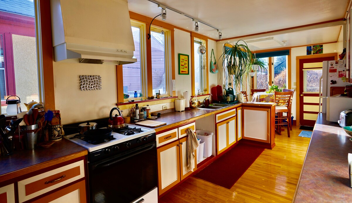 Un Airbnb de la vieja escuela con todo el carácter, el encanto y la individualidad de la casa de alguien. Ubicado en el histórico “Tree District” de Laramie, a pocos pasos del centro de la ciudad y de la Universidad de Wyoming. Un acogedor refugio con jardines y patio de piedra privado en la parte trasera que es el lugar de reunión perfecto. El entorno tiene una sensación cálida y acogedora y está decorada con arte aborigen. Los huéspedes tienen acceso a toda la casa totalmente amueblada. Este es un lugar donde puedes relajarte o trabajar y sentirte como en casa.