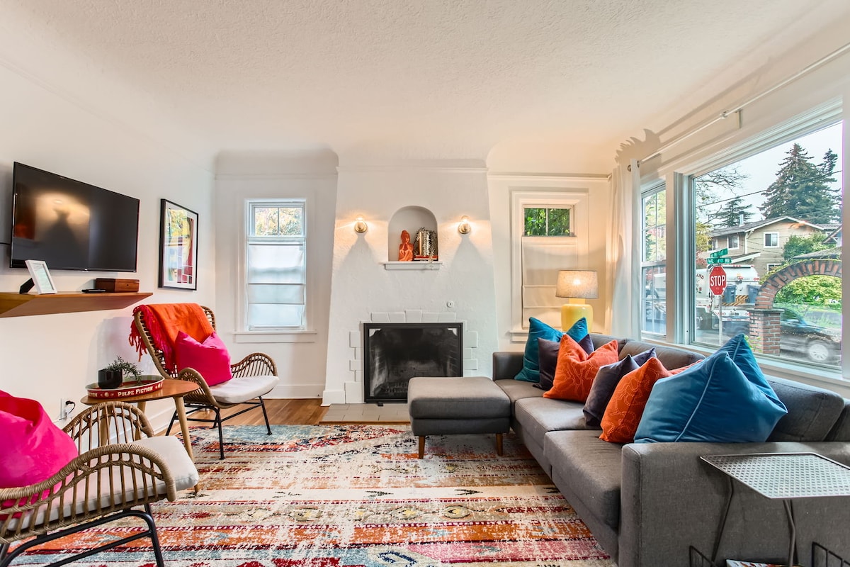 Explora Alberta Arts a 20 cuadras de tiendas de moda, restaurantes, 420, alquiler de bicicletas y parque infantil. Los grupos grandes pueden repartirse en 3 pisos en este bungalow renovado de 1930 permitido para Airbnb: * Apto para niños: ¡2 paquetes y juegos, 2 sillas altas y más! * 1 cama tamaño king, 4 camas tamaño queen, 2 sofás cama individuales y colchones portátiles * 4 smart TV. * Wifi rápido y potente * Cocina totalmente abastecida. * Aire acondicionado centralizado Todo Portland está a casi 15 minutos en todas las direcciones (aeropuerto, sureste, centro, Pearl).