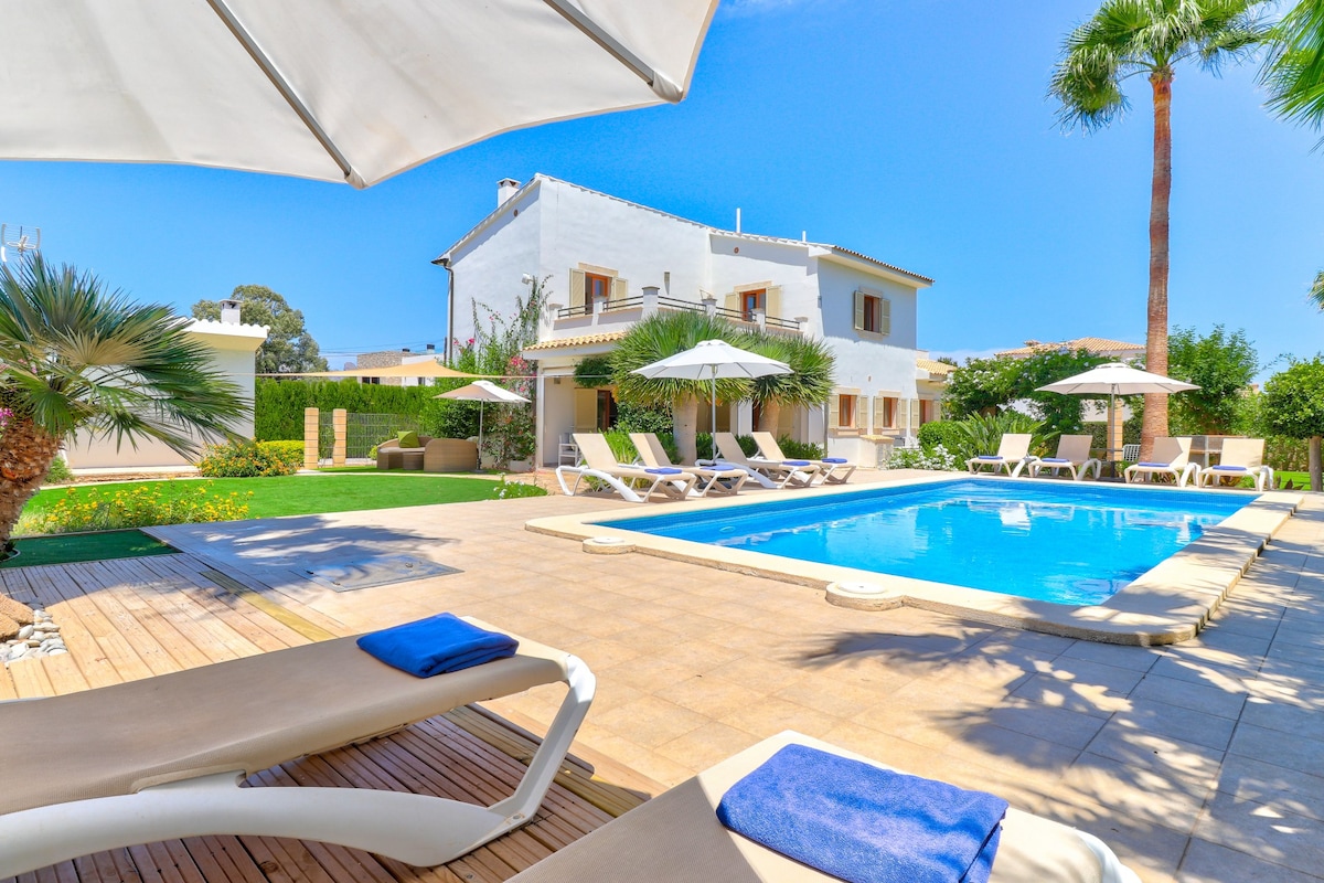 Villa moderna para 8 personas, 4 habitaciones dobles, 4 baños (3 de ellos en suite), aire acondicionado, internet WIFI gratuito, piscina exterior con hidromasaje , cuello de cisne, etc.., ubicación tranquila entre Muro y Can Picafort.
