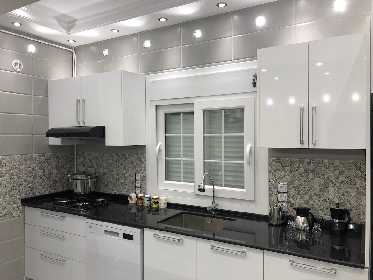 Lujoso apartamento de 2 habitaciones de alto standing con aire acondicionado en una urbanización con seguridad. Apartamento nuevo con todas las comodidades. Espacio de aparcamiento privado con ascensor, parque y jardín. Cerca de la playa y transporte público a 15 minutos del Sheraton y a 2 pasos del centro de la ciudad. Cocina totalmente equipada (horno, microondas, cocina, lavavajillas, lavadora y electrodomésticos...) Cuarto de baño con ducha, suelo radiante y mini «hammam». Una acogedora habitación con cama doble, TV y luces relajantes.