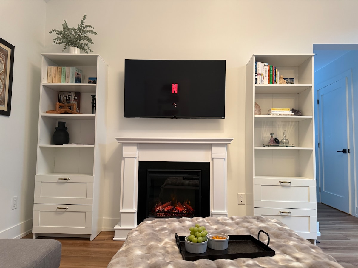Concepto abierto limpio, casa de 2 dormitorios en la planta principal con ESTACIONAMIENTO; puede alojar hasta 4 personas. Con una decoración moderna y sencilla, camas tamaño queen, grandes y hermosas ventanas con cortinas oscuras en la habitación y almacenamiento en el armario. Escritorios de oficina dedicados en habitaciones Cocina completa, con aceite, especias de condimento, tostador, hervidor de agua caliente, cafetera Keurig y café y té de cortesía. Baño limpio con champú+acondicionador+gel de baño+loción TV INTELIGENTE de 60pulgadas con conexión wifi rápida Llegada: 3:00 P. M. Salida: 11 A.M.