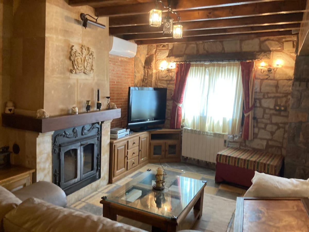Casa rural de alquiler completo, perfecta para escapadas en pareja. Rehabilitada en el año 2015 manteniendo su estructura y materiales nobles: piedra, madera y pizarra; en armonía con comodidades del presente: jacuzzi, estufa de pellets, TV plana de 48", wifi, cama de forja con dosel, diana electrónica, videoconsola wii...