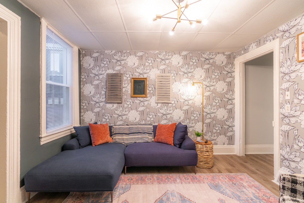 La comodidad moderna se encuentra con el zumbido de Bloomfield: relájate en tu sauna privada, bebe vino junto a la chimenea, balancéate en la hamaca o camina a los mejores cafés y cervecerías de Pittsburgh. Este refugio de 3 dormitorios combina un encanto acogedor con un estilo contemporáneo: dos suites tamaño king, un colchón tamaño queen Purple, muebles West Elm, un oasis en el patio y una cocina de chef. Televisores inteligentes en todas las habitaciones, wifi rápido y estacionamiento fuera de la calle lo hacen fácil. A pocos minutos de Lawrenceville, Shadyside y el centro de la ciudad, donde la vida urbana se encuentra con el lujo relajado.