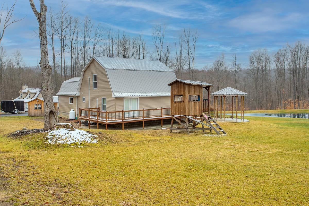 Cabaña construida por una familia en una finca rural de 30 acres, a las afueras del emocionante pueblo turístico de Ellicottville, abierto todo el año. Perfecta para los amantes de la naturaleza y los entusiastas del aire libre, la cabaña tiene todas las necesidades, similar a una casa pequeña. Ubicada cerca de los jardines y rodeada de tranquilas colinas. Disfruta con el desayuno entregado en la puerta o reserva una caminata guiada con el propietario de la finca y aprende sobre plantas y flores medicinales, la topografía de la tierra y un almuerzo de pícnic fresco de la granja en la península de nuestro lago.