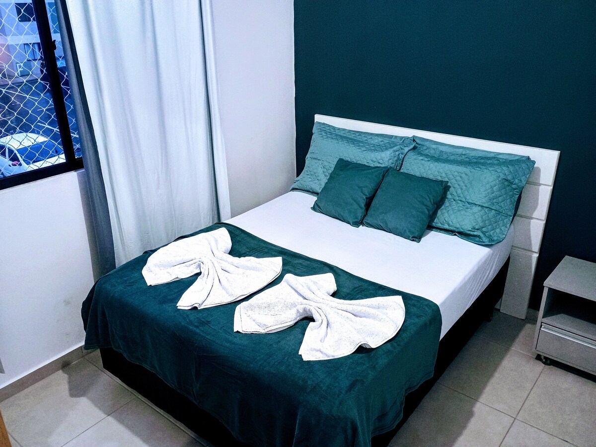 Amplio apartamento con wifi para trabajar en la oficina en casa, llegada autónoma, estacionamiento, cocina equipada y dos dormitorios. Tiene una cama queen y 2 camas individuales. Recepción 24/7 para mayor seguridad. A solo 5 minutos de Santa Felicidade, cerca de Pedreira Paulo Leminski y Parque Tingui. Ideal para parejas, familias o viajeros de placer y de negocios.