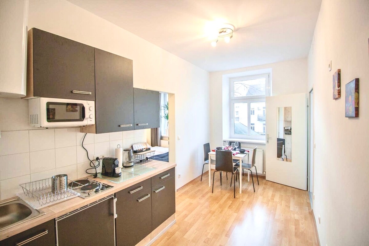 El apartamento está en las inmediaciones de la Volksoper, los ferrocarriles metropolitanos, Kutschkermarkt y el centro de la ciudad. Es bueno para parejas y viajeros de negocios. El acogedor apartamento ofrece una generosa sala de estar con suelo de parquet, una cocina independiente totalmente equipada, un dormitorio con cama de matrimonio, un baño y un aseo independiente. Las generosas alturas de las habitaciones, así como las puertas de ala y las ventanas de caja crean un ambiente maravilloso y cómodo para 1 o 2 personas.