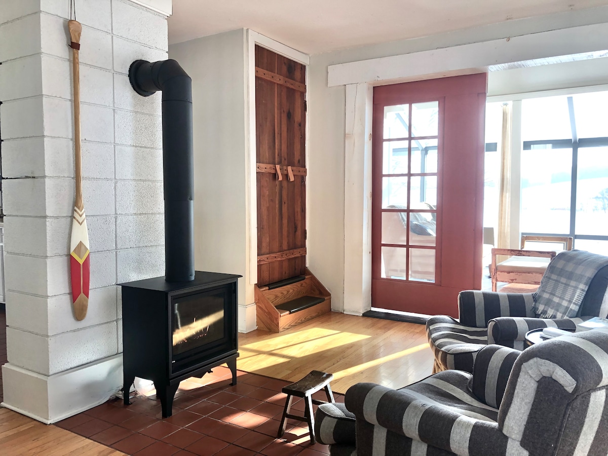 Warbler Lodge se encuentra dentro de Prairie Island Campground a lo largo de los remansos del río Misisipi. Con sábanas algodoneras, café y toallas, equipo de deportes de remo y bicicletas, y un anillo de fuego al aire libre, simplemente puedes presentarte, relajarte, reconectarte y recrearte. Esta pequeña casa cuenta una historia sobre la flora y la fauna del área del parque Prairie Island.