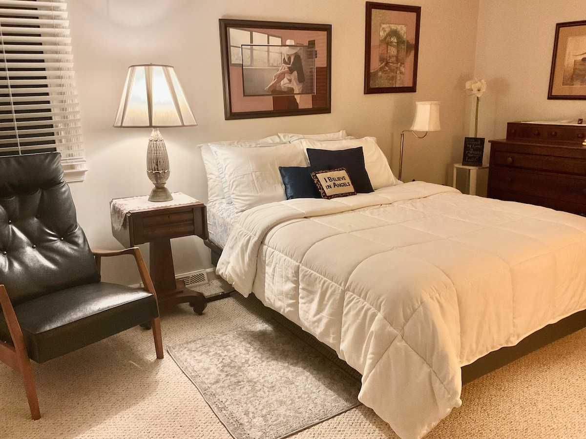 We live on the premises and enjoy sharing our home with families with kids, couples and solo travelers. Our B&B Style home is in a central location in Lynchburg close to all colleges and amenities. You’ll love my place because of its private location, great accommodations and wheelchair accessibility. Breakfast is available for an additional $15/person/night. Grocery stores, restaurants and pharmacies are all within two miles. Liberty U is 15 minutes away. Randolph & Univ of Lynchburg are 10 min
