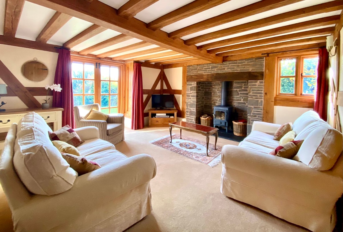 Hollybush Cottage está llena de carácter con un jardín y un arroyo. Está rodeada de bosques y a 100 metros del sendero Offa's Dyke con acceso a kilómetros de hermosos paseos, ideal para cualquier persona que quiera explorar Shropshire y el centro de Gales. Tiene capacidad para 4 personas, hay una cama tamaño king y dos individuales en el segundo dormitorio. Recientemente reformada en todas partes con una nueva cocina totalmente equipada y un baño. La sala de estar tiene una estufa de leña y TV QLED. Banda ancha de fibra súper rápida en todas partes.