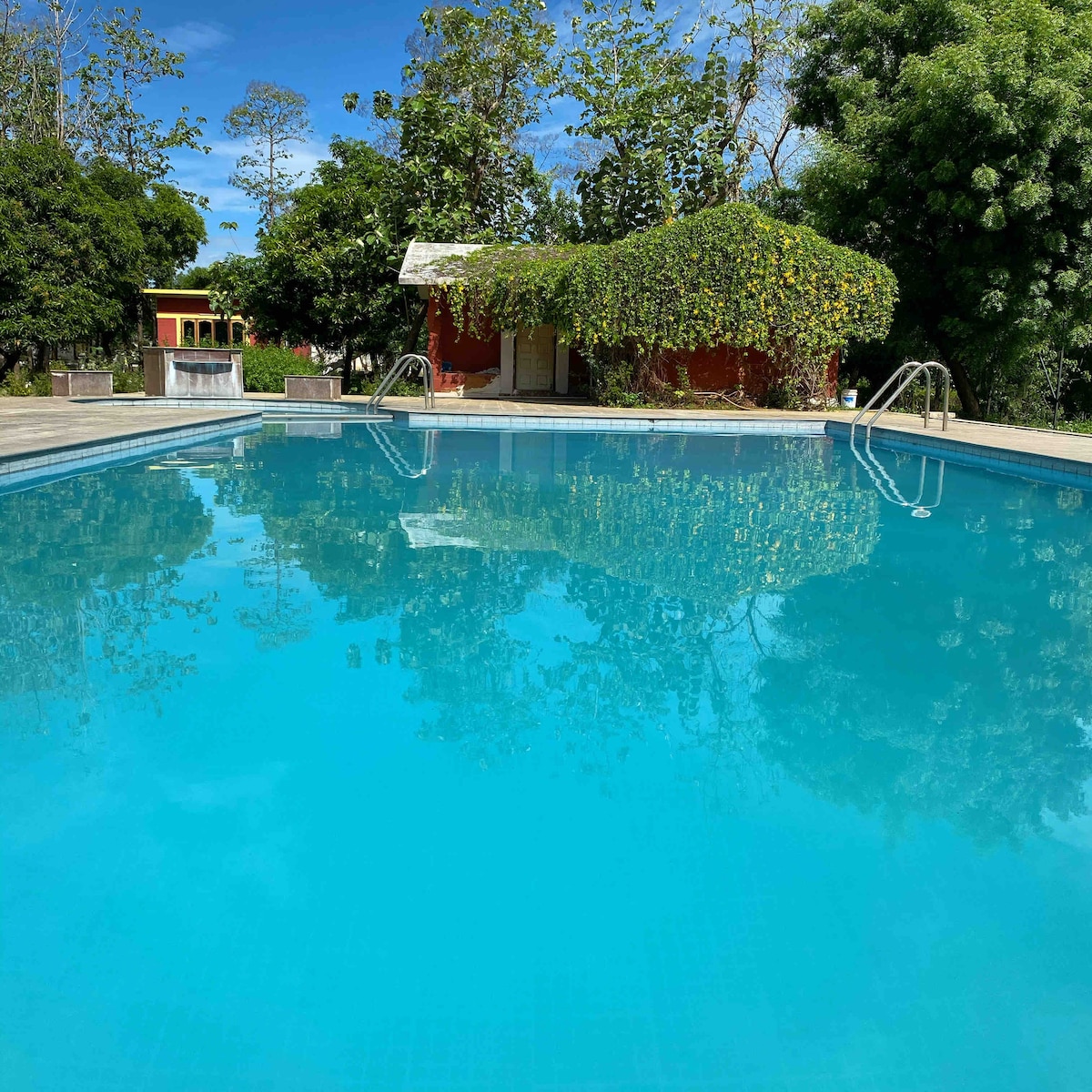 Un hermoso lugar, lugar adecuado para unas vacaciones de ensueño, fogata, eventos, boda de destino, espacio de cowork, escenario abierto con césped, sala de banquetes, sala de conferencias, club de salud y SPA, BAR/ parrilla junto a la piscina, piscina, área de juegos para niños, billar. Disfruta de un desayuno dulce y comienza un amanecer encantador con una vista a la naturaleza y el canto de los pájaros, toma tu maravilloso almuerzo después de refrescarse en la piscina y termina el día con el bar/ parrilla junto a la piscina, la hermosa puesta de sol, la luz de la luna y el fuego, siéntete como en casa lejos de casa.