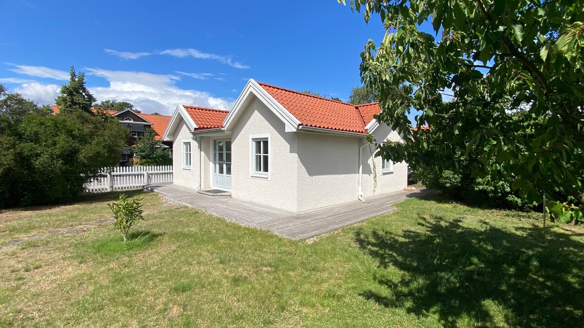 Edificio de apartamentos independiente recién construido en el centro de Kalmar. Aproximadamente 30 metros cuadrados grandes, incluido el loft para dormir con dos camas individuales y un sofá cama. Abre en punto. Hay una cocina totalmente equipada con estufa, horno, nevera y congelador, así como baño con ducha y lavadora. Ubicado en la parte trasera de una parcela de villa en un exuberante jardín, con la sensación de estar en el campo. A 800 metros del centro de la ciudad, a 900 metros del castillo/zona de baño de Kalmar y a 4 km en coche del puente de Öland.