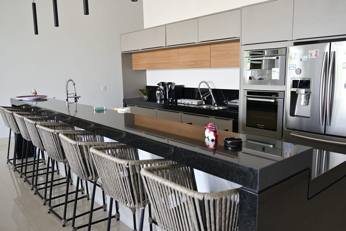 @recantodasgarcas_ 🌿 Déjate cautivar por esta hermosa propiedad: jardín luminoso, casa espaciosa y acogedora Zona gourmet totalmente equipada 🍖 (congelador, minibar, encimera, sistema de sonido y TV), 🏊 piscina Chimenea 🔥 al aire libre. 🛏️ Dormitorio 01: cama tamaño queen + cama nido ❄️📺 🛏️ Dormitorio 02: Cama de dos plazas + cama nido ❄️📺 🛏️ Dormitorio 03 con baño privado: cama matrimonial + cama nido❄️📺🚿 🛏️ Dormitorio 04 con baño en suite: cama doble❄️🚿 🛏️ Ropa de cama y toallas 🏋️ Gimnasio básico ⚽ Cancha de voleibol playa 🏓Ping-pong 🎱Billar 🌅 Vista del embalse 🏡¡Ideal para familias! ❤️