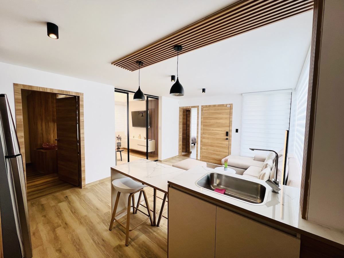 Disfrutarás de un departamento muy CENTRICO ubicado en el mejor sector de la ciudad de Atuntaqui. Es de 120m2, cuenta con 2 dormitorios con camas de 2 plzs, 2 baños y medio, televisiones smart con Netflix en cada habitación y sala, una magnifica vista al volcán Imbabura . En esta ubicación tendrás fácil acceso a las vías principales, lugares turísticos, restaurantes, panadería, verdulería, taxis y completamente seguro.