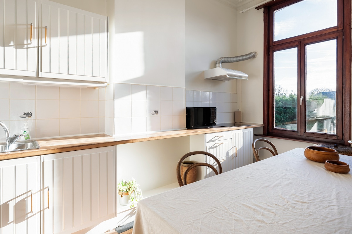 Te damos la bienvenida a este encantador apartamento en el segundo piso de una casa auténtica. Se distribuye en dos niveles y está conectado por una escalera compartida. El diseño divide tu dormitorio y baño privados a un lado y tu sala de estar y cocina privadas al otro. Situado en la segunda calle más antigua de Amberes, este barrio está rodeado de parques verdes. Gracias a las excelentes conexiones de transporte público y una estación de bicicletas compartida, estás a solo 15 minutos del centro.