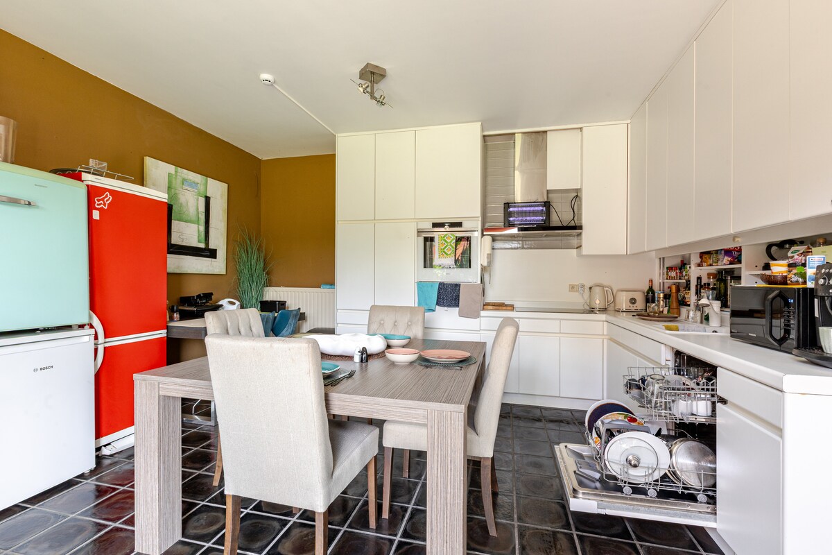 Casa céntrica, cerca del puerto y de Amberes. A 20 minutos estás en el centro de Amberes en coche o transporte público. Casa completa a tu disposición. 1 dormitorio grande con cama matrimonial y 1 dormitorio con sofá cama. adecuado para 4 personas, todo está en la planta baja. hay estacionamiento gratuito disponible en el estacionamiento frente a la casa. Baño con ducha a ras del suelo, cocina totalmente equipada con horno, fuego de inducción y horno combinado.